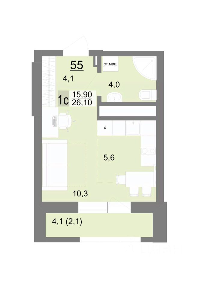 55 м² · Этаж 26 из 26