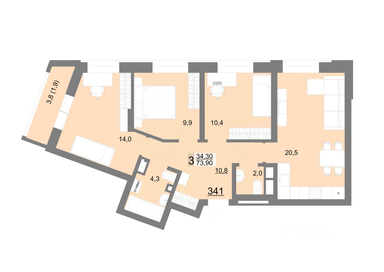 74 м² · Этаж 3 из 26