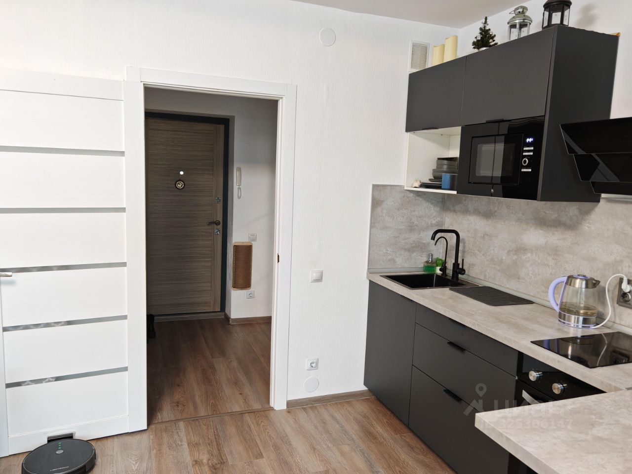 Объект N 196557. Уютная светлая студия в развитом районе Академический. Квартира в отличном состоянии, полностью готова к проживанию. Площадь 27,3 кв. м. Балкон выходит во двор. Остаётся кухонный гарнитур со встроенной техникой, диван. В шаговой доступности школа, детский сад, остановки общественного транспорта, магазины, поликлиника. Удобная транспортная развязка, новые дороги. Тихий двор, современная планировка квартала.