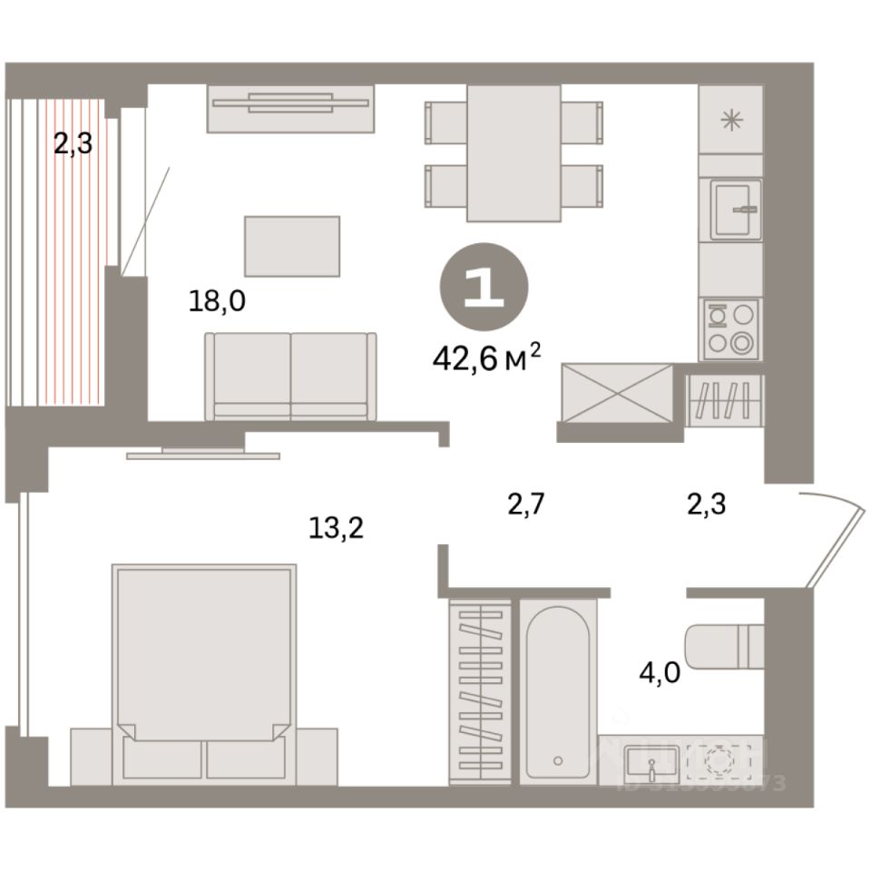 42 м² · Этаж 16 из 16