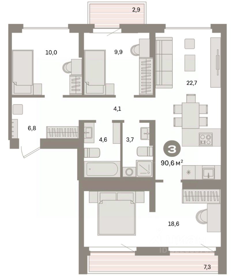 90 м² · Этаж 9 из 9