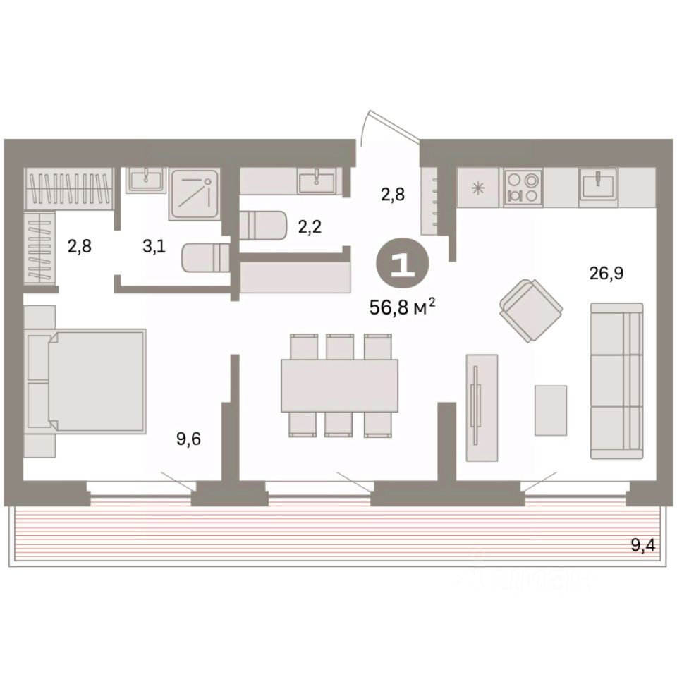 56 м² · Этаж 8 из 9
