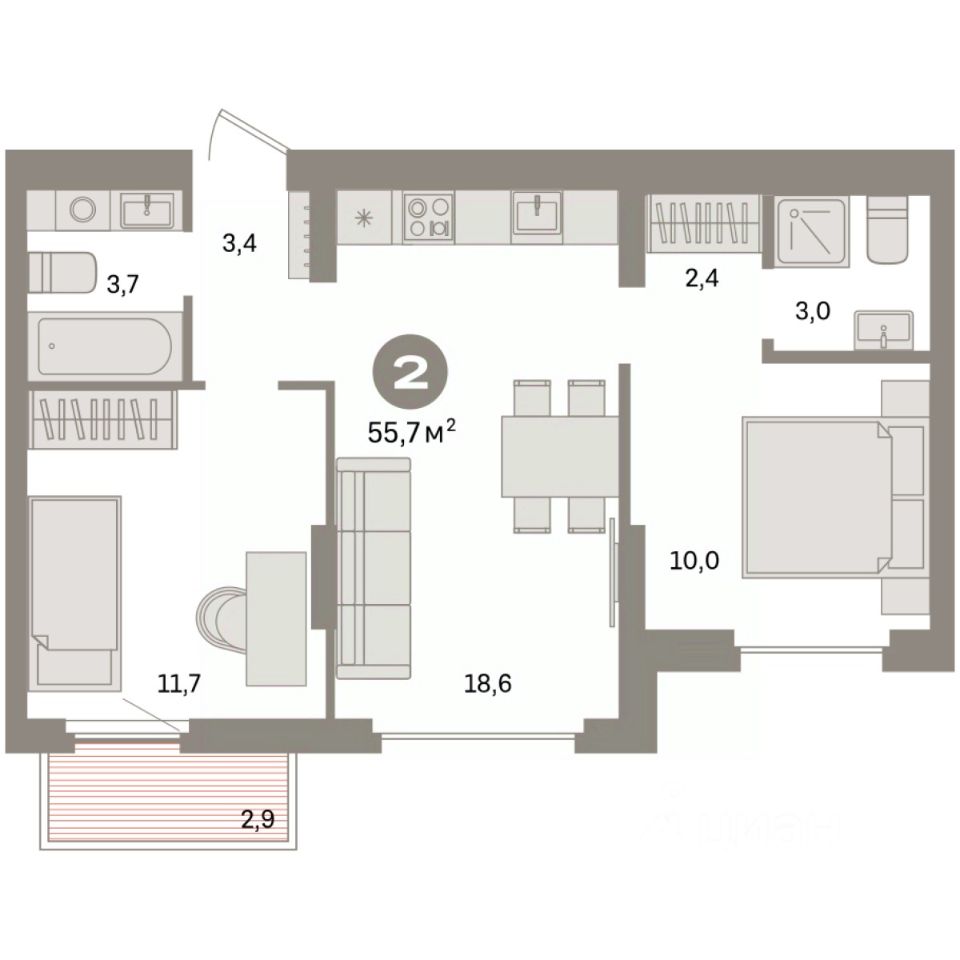 55 м² · Этаж 7 из 9