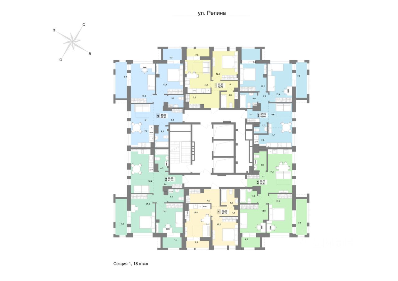 67 м² · Этаж 18 из 30