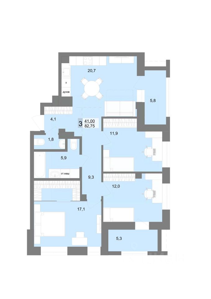 83 м² · Этаж 20 из 30