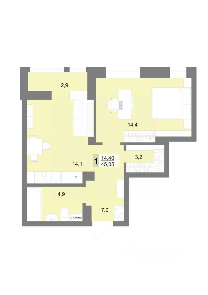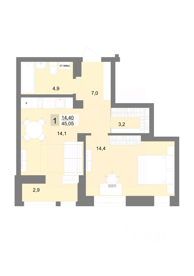 45 м² · Этаж 7 из 30