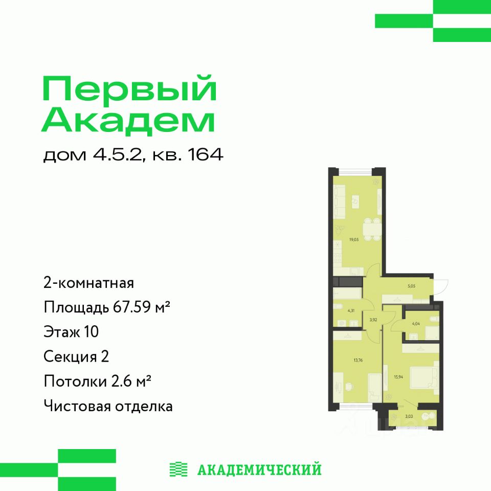 Продается 4-комнатная квартира площадью 81.68 кв.м. от девелопера ''Академический'' в жилом квартале ''Первый Академ''. Срок сдачи дома в 2026 году. Дом 4.5 расположен на въезде в район, рядом с ТРЦ ''Академический''. Через дорогу проходит трамвайная линия. Два вида отделки: ''под ключ'' и white-box. Одна из особенностей - это квартиры с большими окнами. В доме появляется больше естественного света и ваша квартира становится более светлой, просторной и уютной. На территории квартала предусмотрено множество удобств для жильцов, включая комфортные холлы в стиле ар-деко, видеонаблюдение 24/7, двор без машин, кладовые и паркинги с выходом из лифта, магазины и полезные сервисы на первых этажах. Кроме того, в шаговой доступности расположены торговые и спортивные объекты, медицинские и образовательные учреждения.