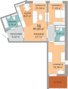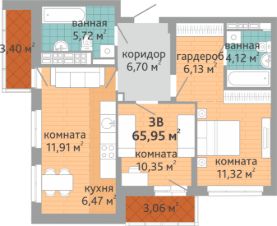 Продаётся 3-комнатная квартира в сданном доме (Коперника, 33), срок сдачи: III-кв. 2025, общей площадью 65.95 кв.м., на 15 этаже. Новый жилой дом от застройщика ''СЗ Дельа-Групп'' расположен по адресу: г. Екатеринбург, улица Викулова (дублёр).