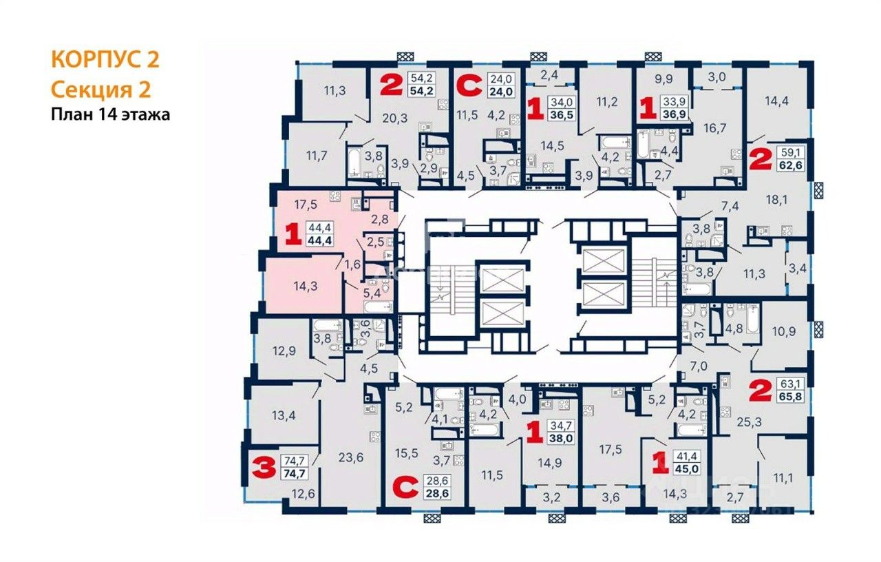 44 м² · Этаж 14 из 29