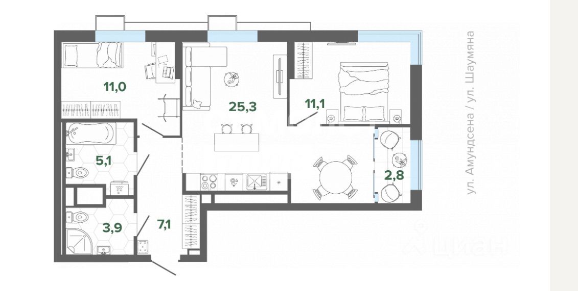 2-к, Шаумяна, 11 стр.