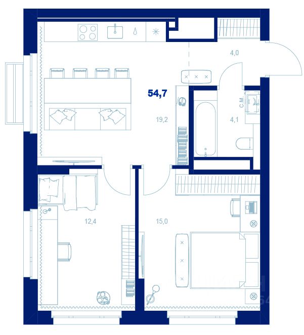 55 м² · Этаж 19 из 20