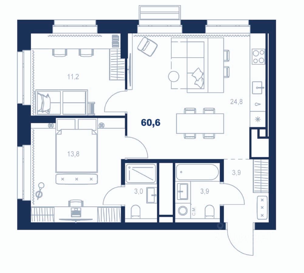 60 м² · Этаж 27 из 32