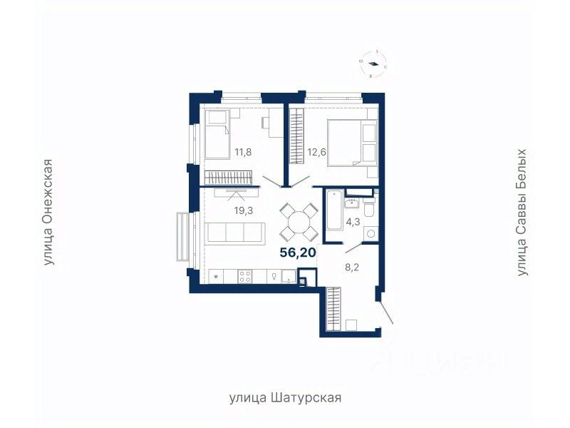 56 м² · Этаж 11 из 20