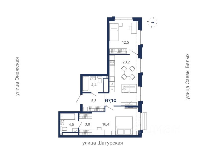 67 м² · Этаж 16 из 20