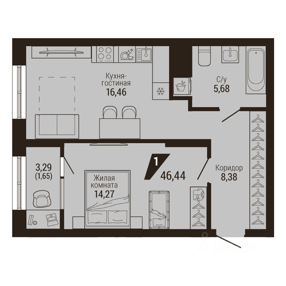 46 м² · Этаж 14 из 23