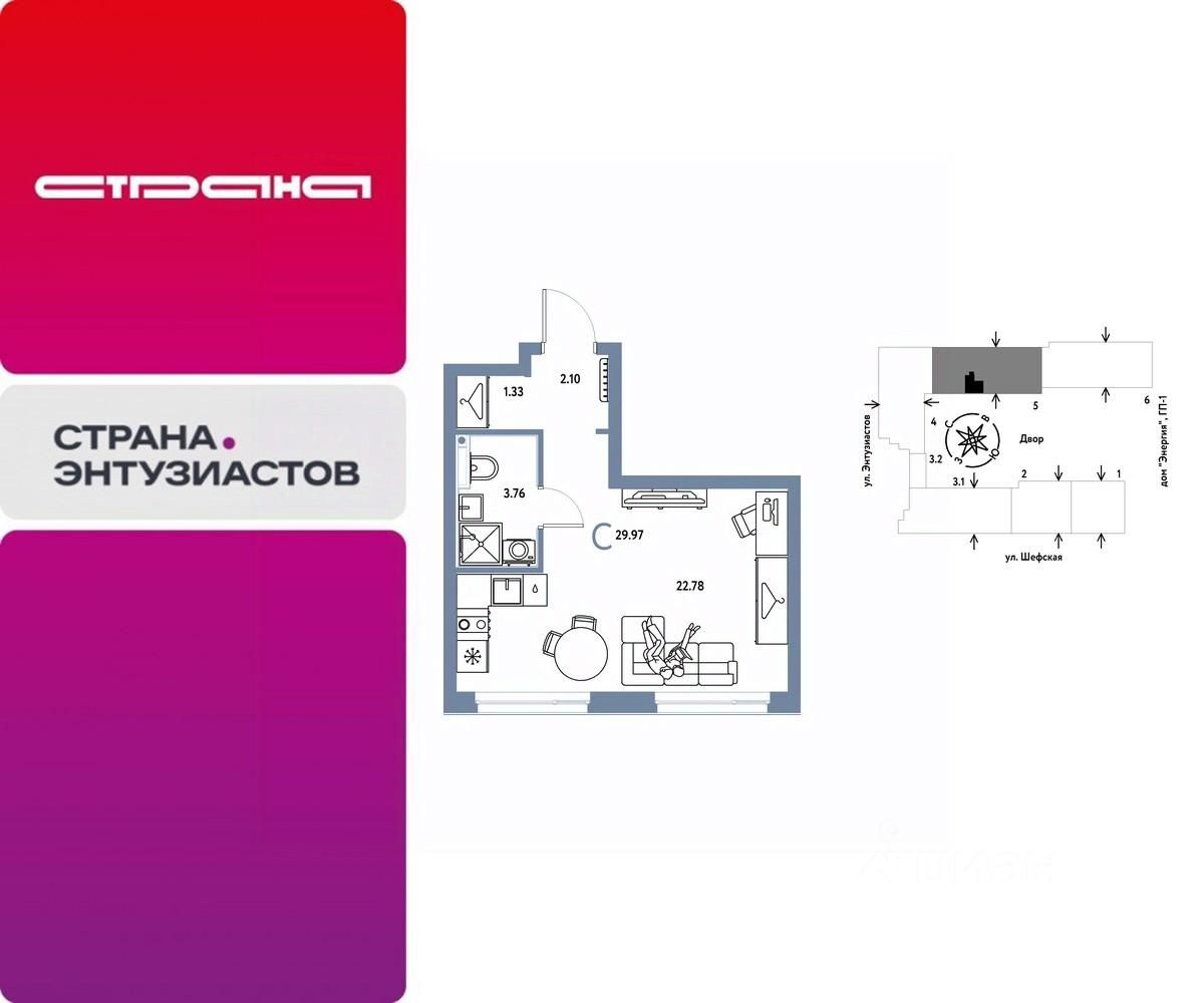 Новая квартира в ЖК ''Страна.Энтузиастов'' напрямую от федерального застройщика ''Страна Девелопмент''. Продается 1комнатная квартира на 12 этаже от застройщика Страна Девелопмент. Площадь квартиры 29,97 кв. м. ЖК ''Страна.Энтузиастов'' Жилой комплекс ''Страна.Энтузиастов'' — это уютный квартал на севере Екатеринбурга, в центре Эльмаша. Здесь органично соединяются природа и умные технологии. Главной точкой притяжения станет ''зелёная'' городская гостиная, которая объединит жителей района. А значимой социальной особенностью проекта выступит муниципальный детсад на 100 мест. Преимущества •Городская гостиная для отдыха жителей и гостей — мы вдохновились энергией народной стройки и огромным желанием сделать свой дом лучше и уютнее. Ведь в середине ХХ века на Эльмаше кипела заводская жизнь, лился металл, инженеры и рабочие. •У каждого дома свой приватный двор окружен ''зеленью'', которая будет цвести весь год. Двор мы разделили на несколько зон: для детей младшего и среднего возраста, релакс пространство с гамаками и подвесными креслами, спортивная зона с воркаут и настольным теннисом. •На первых этажах находятся торговые и офисные помещения. В них располагаются полезные сервисы для жителей: рестораны, магазины, пекарни, кофейни, аптеки, салоны красоты и пункты выдачи заказов. Для каждого помещения спроектирован отдельный вход, витражное остекление и место под вывеску. Отделка Квартиры сдаются с предчистовой отделкой: произведена разводка электричества и отопления, выполнена стяжка пола, стены выровнены ''под маяк'', установлены розетки, выключатели и радиаторы. Дизайнерская отделка При покупке квартиры в ЖК ''Страна.Энтузиастов'' можно включить стоимость ремонта в ипотеку. Пять вариантов на выбор: хлопковая нить, серый шторм, белый камень, шалфей, голубой вереск. Способы покупки Сотрудники ''Страна Девелопмент'' будут сопровождать вас на каждом этапе сделки, помогут получить одобрение по ипотеке или снизить ежемесячный платеж. - ипотека - рассрочка - с использованием материнского капитала -100% оплата наличными