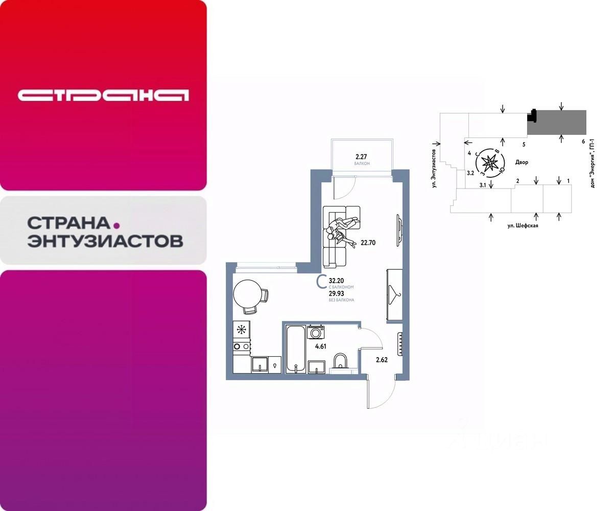 Новая квартира в ЖК ''Страна.Энтузиастов'' напрямую от федерального застройщика ''Страна Девелопмент''. Продается 1комнатная квартира на 4 этаже от застройщика Страна Девелопмент. Площадь квартиры 32,2 кв. м. ЖК ''Страна.Энтузиастов'' Жилой комплекс ''Страна.Энтузиастов'' — это уютный квартал на севере Екатеринбурга, в центре Эльмаша. Здесь органично соединяются природа и умные технологии. Главной точкой притяжения станет ''зелёная'' городская гостиная, которая объединит жителей района. А значимой социальной особенностью проекта выступит муниципальный детсад на 100 мест. Преимущества •Городская гостиная для отдыха жителей и гостей — мы вдохновились энергией народной стройки и огромным желанием сделать свой дом лучше и уютнее. Ведь в середине ХХ века на Эльмаше кипела заводская жизнь, лился металл, инженеры и рабочие. •У каждого дома свой приватный двор окружен ''зеленью'', которая будет цвести весь год. Двор мы разделили на несколько зон: для детей младшего и среднего возраста, релакс пространство с гамаками и подвесными креслами, спортивная зона с воркаут и настольным теннисом. •На первых этажах находятся торговые и офисные помещения. В них располагаются полезные сервисы для жителей: рестораны, магазины, пекарни, кофейни, аптеки, салоны красоты и пункты выдачи заказов. Для каждого помещения спроектирован отдельный вход, витражное остекление и место под вывеску. Отделка Квартиры сдаются с предчистовой отделкой: произведена разводка электричества и отопления, выполнена стяжка пола, стены выровнены ''под маяк'', установлены розетки, выключатели и радиаторы. Дизайнерская отделка При покупке квартиры в ЖК ''Страна.Энтузиастов'' можно включить стоимость ремонта в ипотеку. Пять вариантов на выбор: хлопковая нить, серый шторм, белый камень, шалфей, голубой вереск. Способы покупки Сотрудники ''Страна Девелопмент'' будут сопровождать вас на каждом этапе сделки, помогут получить одобрение по ипотеке или снизить ежемесячный платеж. - ипотека - рассрочка - с использованием материнского капитала -100% оплата наличными