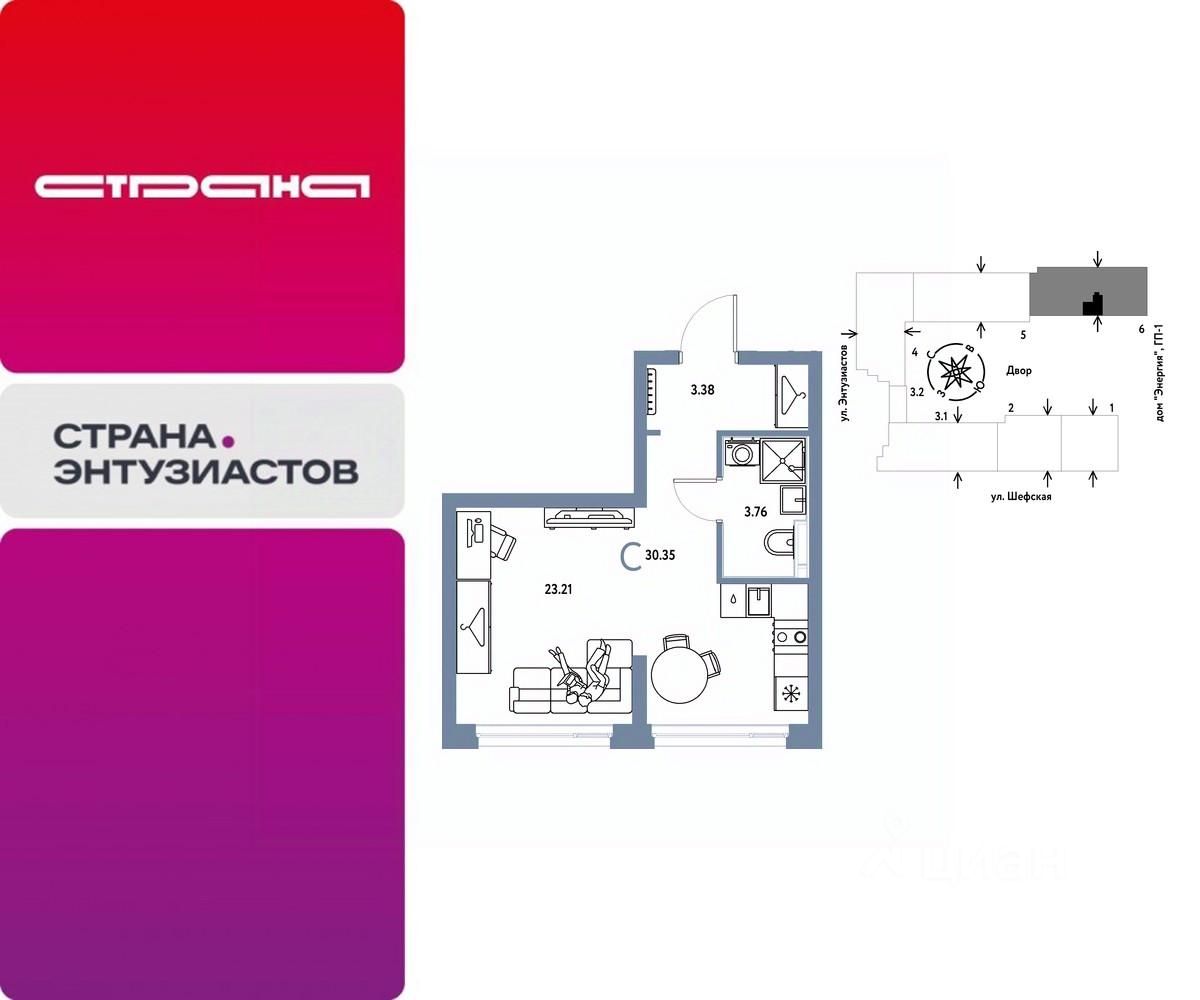 Новая квартира в ЖК ''Страна.Энтузиастов'' напрямую от федерального застройщика ''Страна Девелопмент''. Продается 1комнатная квартира на 6 этаже от застройщика Страна Девелопмент. Площадь квартиры 30,35 кв. м. ЖК ''Страна.Энтузиастов'' Жилой комплекс ''Страна.Энтузиастов'' — это уютный квартал на севере Екатеринбурга, в центре Эльмаша. Здесь органично соединяются природа и умные технологии. Главной точкой притяжения станет ''зелёная'' городская гостиная, которая объединит жителей района. А значимой социальной особенностью проекта выступит муниципальный детсад на 100 мест. Преимущества •Городская гостиная для отдыха жителей и гостей — мы вдохновились энергией народной стройки и огромным желанием сделать свой дом лучше и уютнее. Ведь в середине ХХ века на Эльмаше кипела заводская жизнь, лился металл, инженеры и рабочие. •У каждого дома свой приватный двор окружен ''зеленью'', которая будет цвести весь год. Двор мы разделили на несколько зон: для детей младшего и среднего возраста, релакс пространство с гамаками и подвесными креслами, спортивная зона с воркаут и настольным теннисом. •На первых этажах находятся торговые и офисные помещения. В них располагаются полезные сервисы для жителей: рестораны, магазины, пекарни, кофейни, аптеки, салоны красоты и пункты выдачи заказов. Для каждого помещения спроектирован отдельный вход, витражное остекление и место под вывеску. Отделка Квартиры сдаются с предчистовой отделкой: произведена разводка электричества и отопления, выполнена стяжка пола, стены выровнены ''под маяк'', установлены розетки, выключатели и радиаторы. Дизайнерская отделка При покупке квартиры в ЖК ''Страна.Энтузиастов'' можно включить стоимость ремонта в ипотеку. Пять вариантов на выбор: хлопковая нить, серый шторм, белый камень, шалфей, голубой вереск. Способы покупки Сотрудники ''Страна Девелопмент'' будут сопровождать вас на каждом этапе сделки, помогут получить одобрение по ипотеке или снизить ежемесячный платеж. - ипотека - рассрочка - с использованием материнского капитала -100% оплата наличными