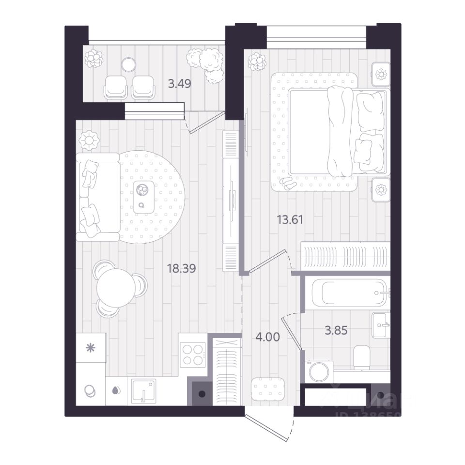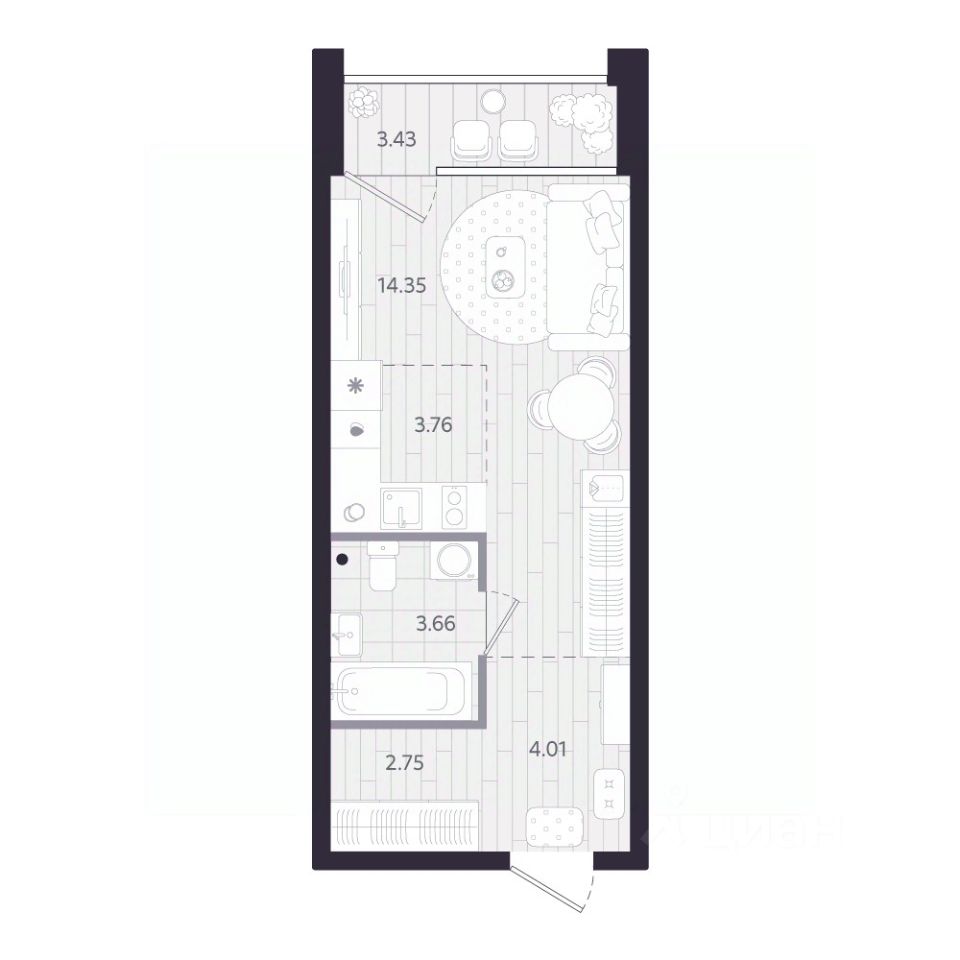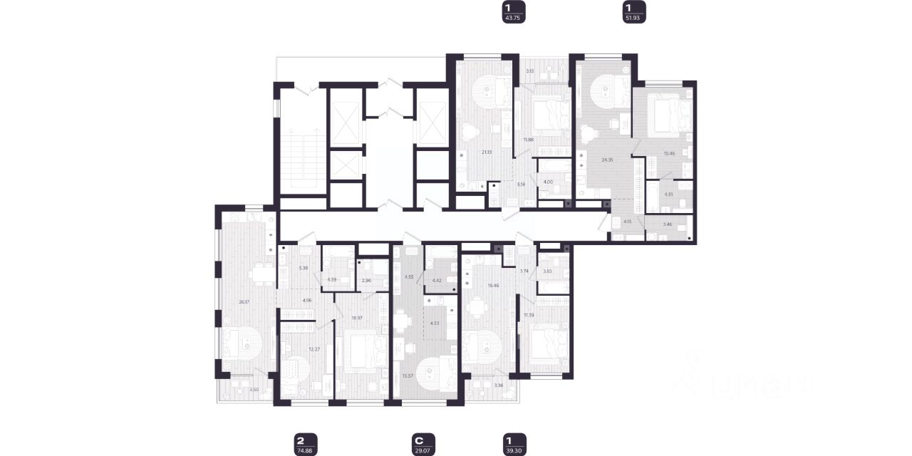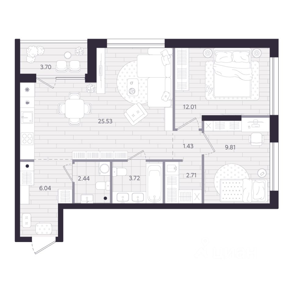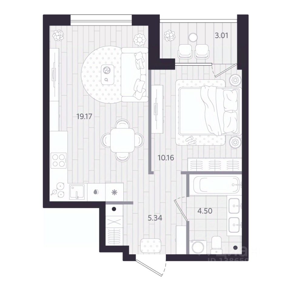 43 м² · Этаж 19 из 24
