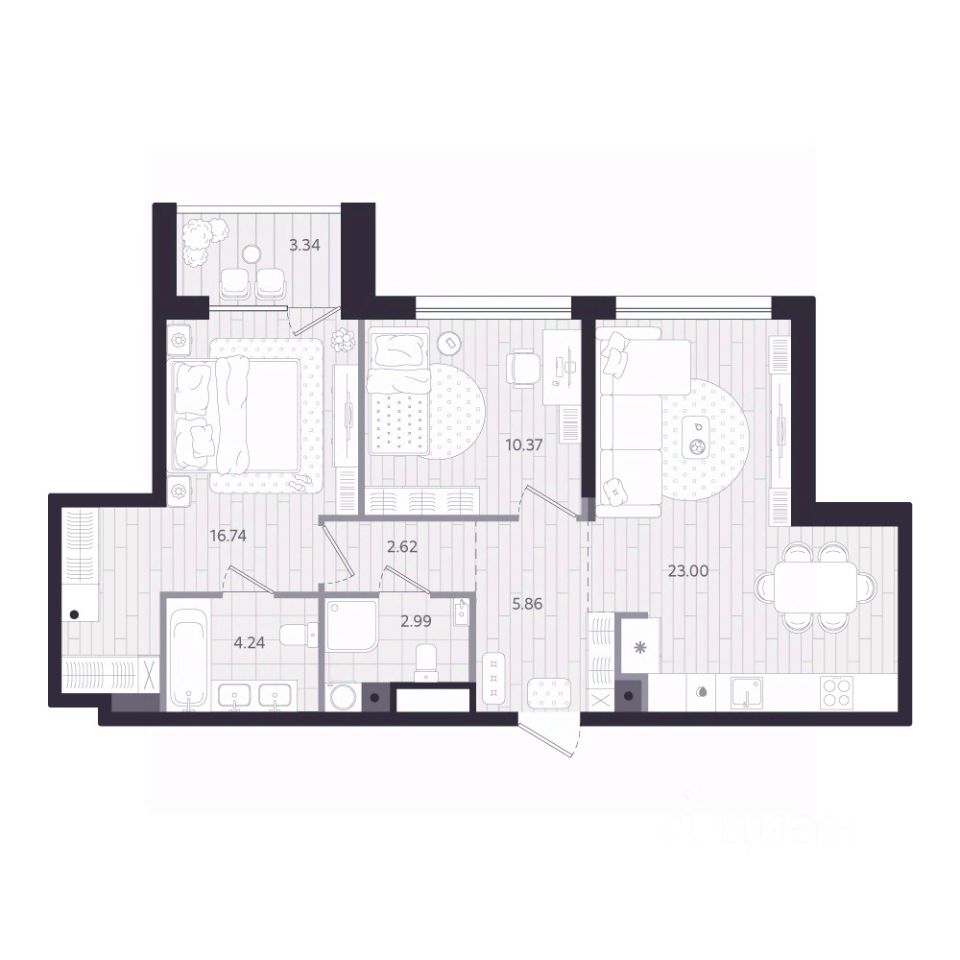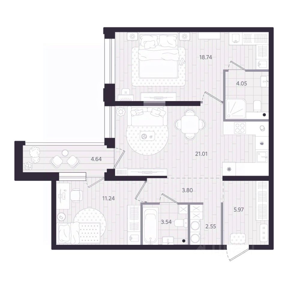 65 м² · Этаж 19 из 24
