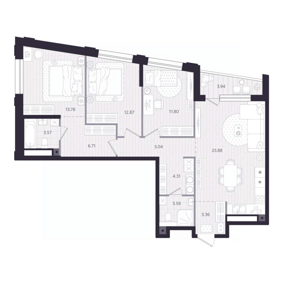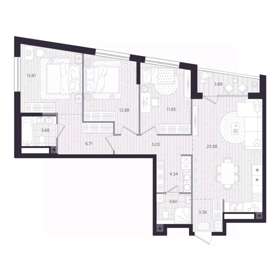 71 м² · Этаж 19 из 24