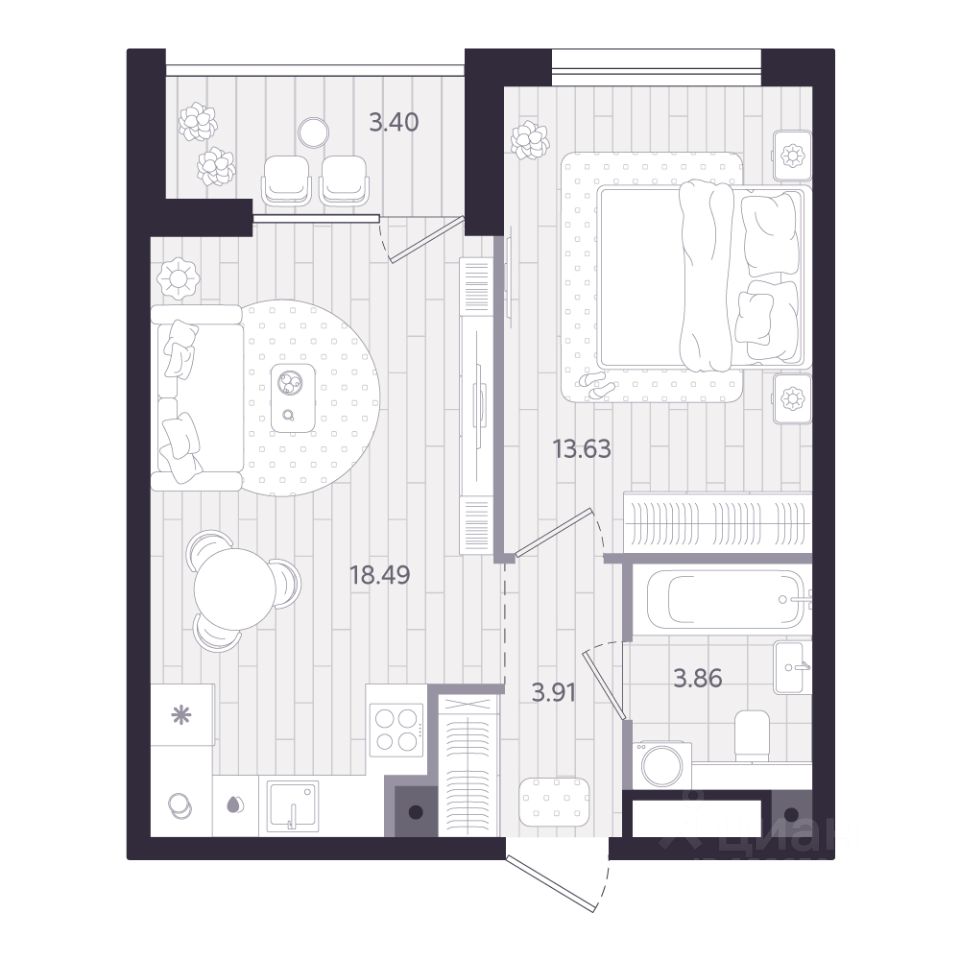 40 м² · Этаж 19 из 24