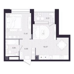 Продаётся 1-комнатная квартира в строящемся доме (Дом 1.1), срок сдачи: II-кв. 2028, общей площадью 41.59 кв.м., на 19 этаже. Новый жилой комплекс ''Тетро'' от застройщика ''Люди'' расположен по адресу: г. Екатеринбург, улица Героев России.