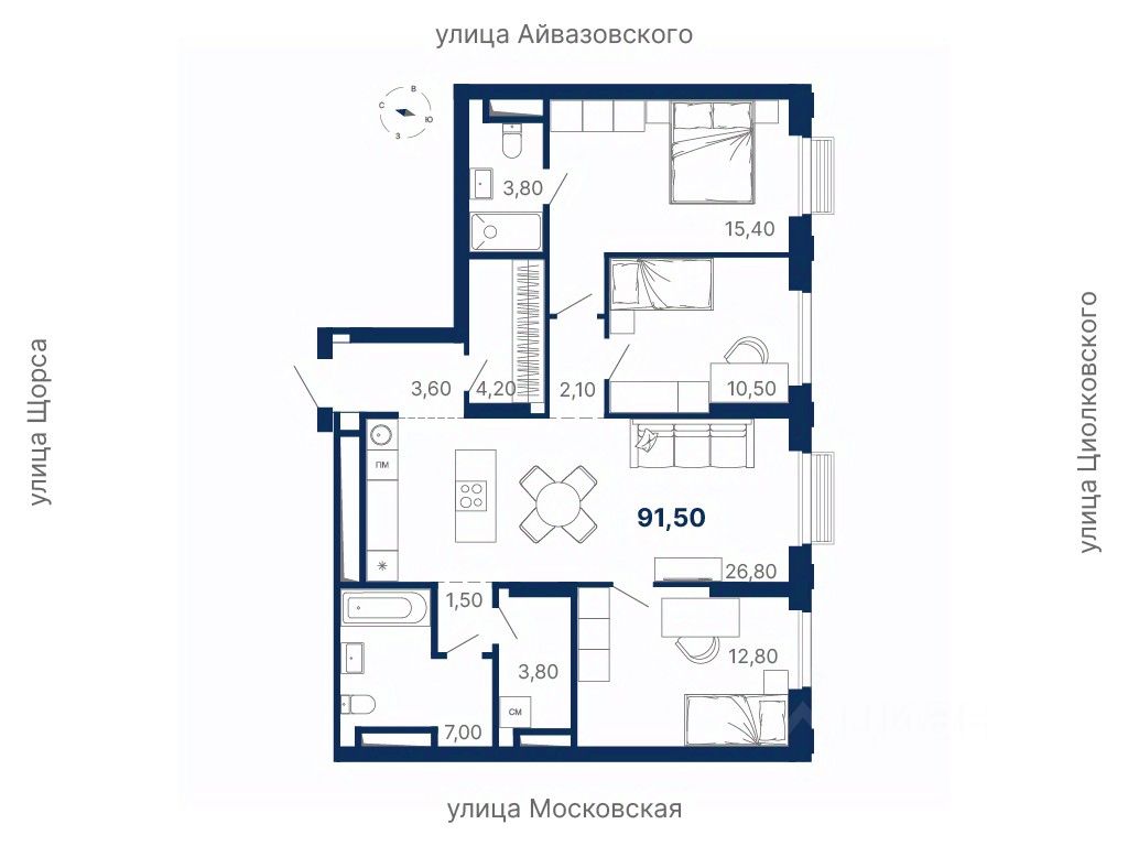 Просторная квартира в ''Парке Столиц'' — выбор тех, кто ценит личное пространство и качество жизни. Здесь достаточно места для детских игр, уютной родительской спальни, кабинета и гостиной, где собирается вся семья. ''Парк Столиц'' — современный жилой комплекс бизнес-класса с закрытой территорией, уникальным двором с ручьём и собственной УК. Локация — между ул. Московская, Щорса, Айвазовского и Циолковского, в шаговой доступности от метро Чкаловская. Поблизости школы, сады, магазины, аптеки, медицинские центры. Возможны ипотека, рассрочка, трейд-ин и комбо-покупка.