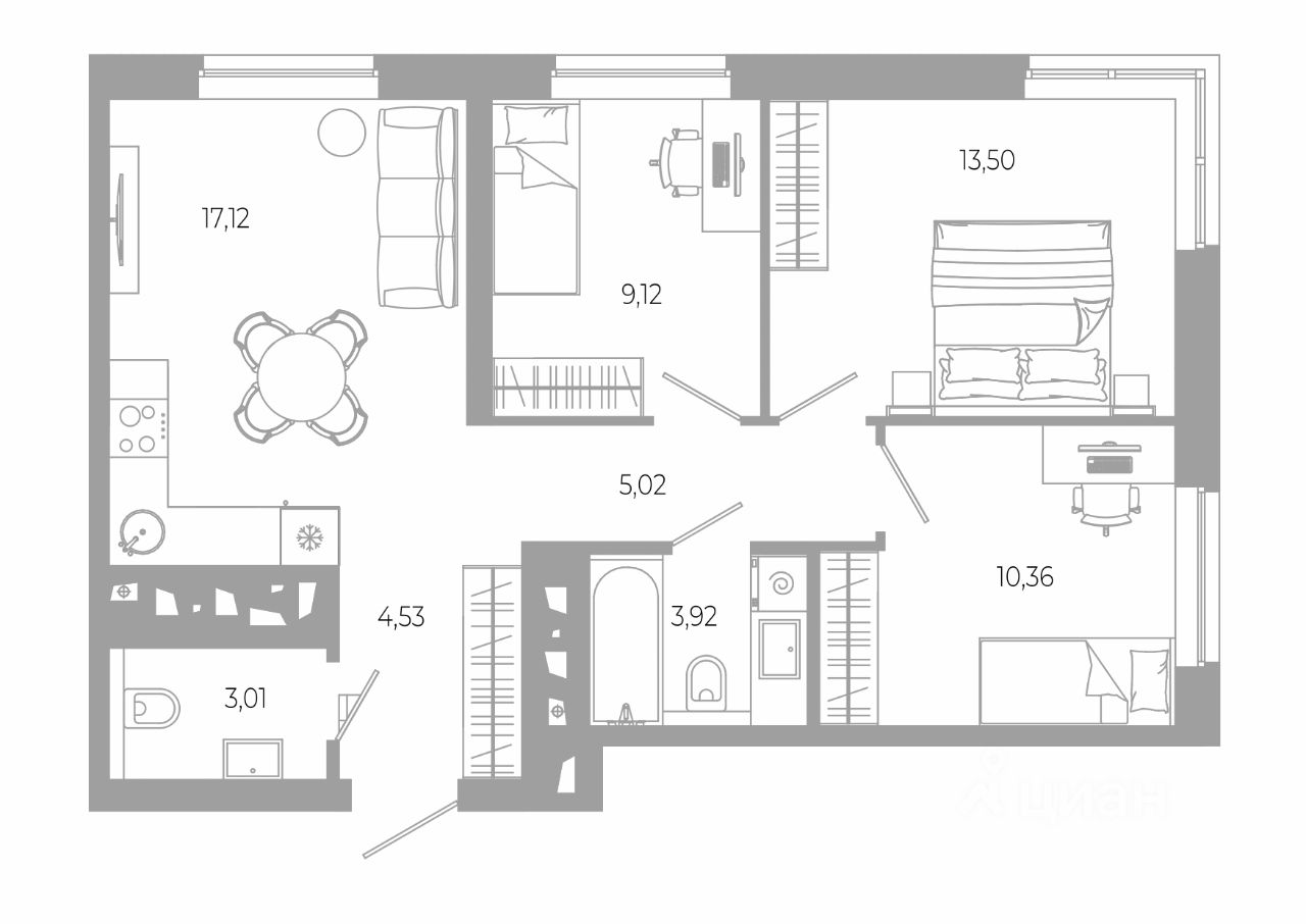 Трехкомнатные