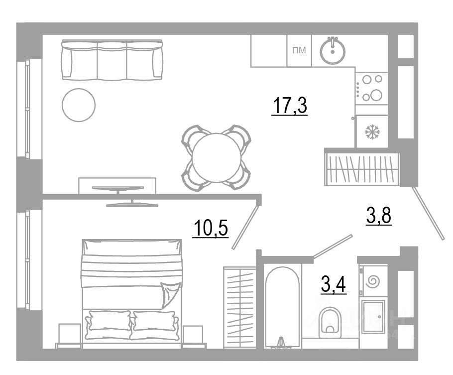 38 м² · Этаж 3 из 18