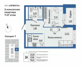 39 м2
