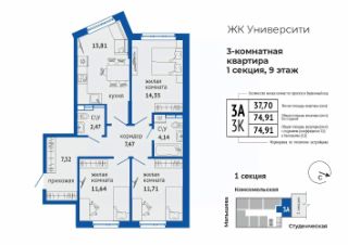 1-комн. квартира-студия от застройщика с предчистовой отделкой в ЖК ''Алиса'' на 14 этаже. Общая площадь: 21.74 кв.м., площадь гостиной 15.01 кв.м., из которых 5.16 кв.м. выделено под кухонную зону. Все окна выходят на одну сторону. В квартире один совмещенный санузел. Высота потолков 2.72 м. Дом монолитный, черырехподъездный, высотой 25 этажей. Квартира находится в 9-й секции в корпусе 1. На этаже 5 квартир. В подъезде 1 пассажирский и 1 грузовой лифт. Окончание строительства - 4 квартал 2028 года. Оформление сделки по договору долевого участия. ЖК ''Алиса'' — это уникальная коллаборация Яндекс и BAZA Development, где совместно разработана комплектация для оснащения квартир, жизни в доме и развития УК. - Забудьте о ключах: подъезд, паркинг и лифт открываются автоматически.- Готовые сценарии в один клик: автоматическое проветривание, контроль отопления и освещения.- Безопасность 24/7: доступ к видеонаблюдению прямо с вашего смартфона, а также датчики протечки.- Каждому новосёлу предоставляется подарочный бокс с умными устройствами. Локация - Втузгородок. Интеллектуальный хаб города. Рядом сосредоточены ведущие вузы, научные центры. Комплекс включает 3 очереди застройки с развитой инфраструктурой:• Комьюнити-центр• Общая терраса• Кофейня в лобби• Падел-корт• Детский сад• Подземный паркинг с автомойкой• Фитнес с бассейном• Терраса с кинотеатром, баром и каворкингом Предлагаем будущим жителям отделку White Box или три варианта стилистики чистовой отделки на выбор: - Акцентный стиль отделки: общая палитра в теплых бежевых тонах с акцетной стеной темно-террактотово цвета.- Классический стиль отделки: мягкие нейтральные оттенки, стена оливкого цвета.- Стиль отделки УРБАН -ЛОФТ: индустриальная эстетика с контрастом белого и черного, бетонные потолки, открытая подводка, стены под кирпич. #269ASA