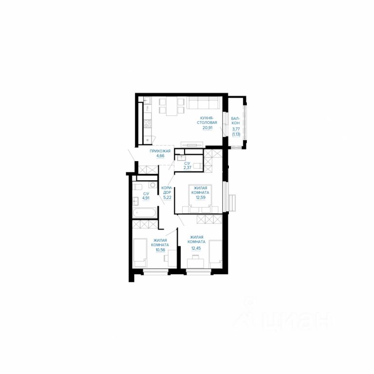 22 м² · Этаж 20 из 25