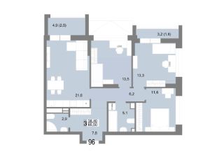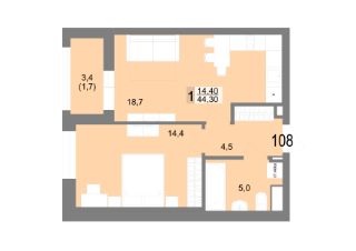 44 м2