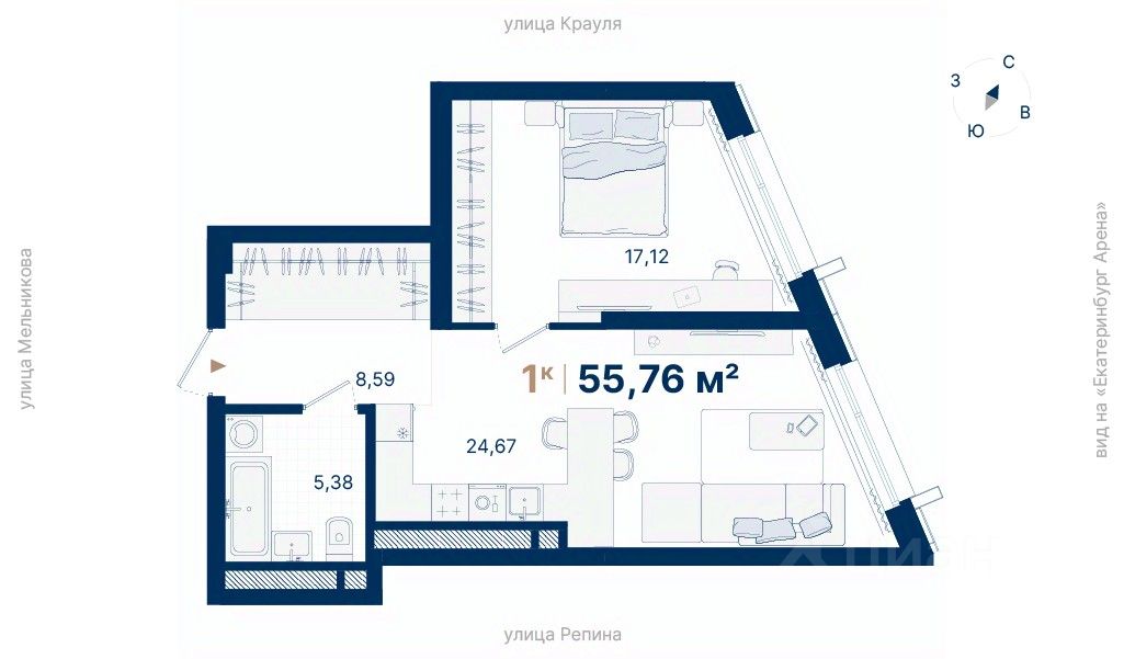 55 м² · Этаж 6 из 29