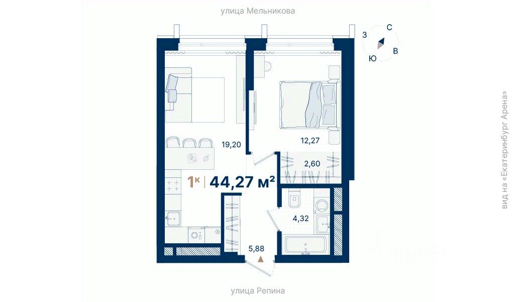 44 м² · Этаж 14 из 29
