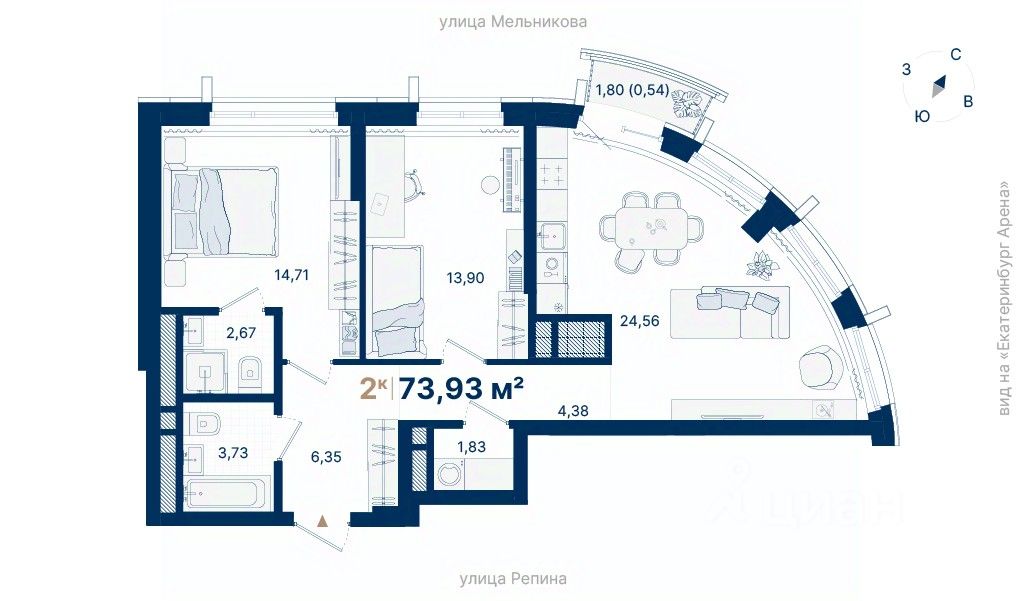 73 м² · Этаж 11 из 29