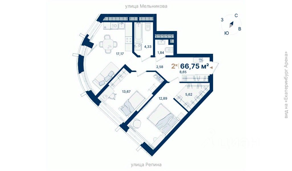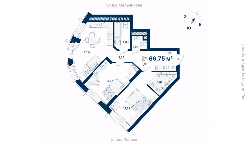 66 м² · Этаж 14 из 29