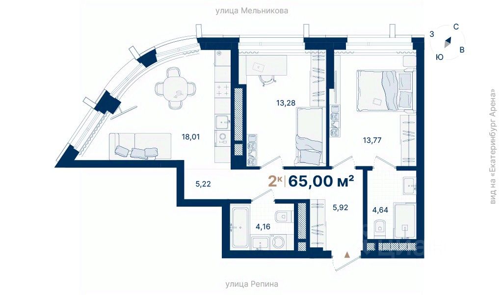 65 м² · Этаж 14 из 29