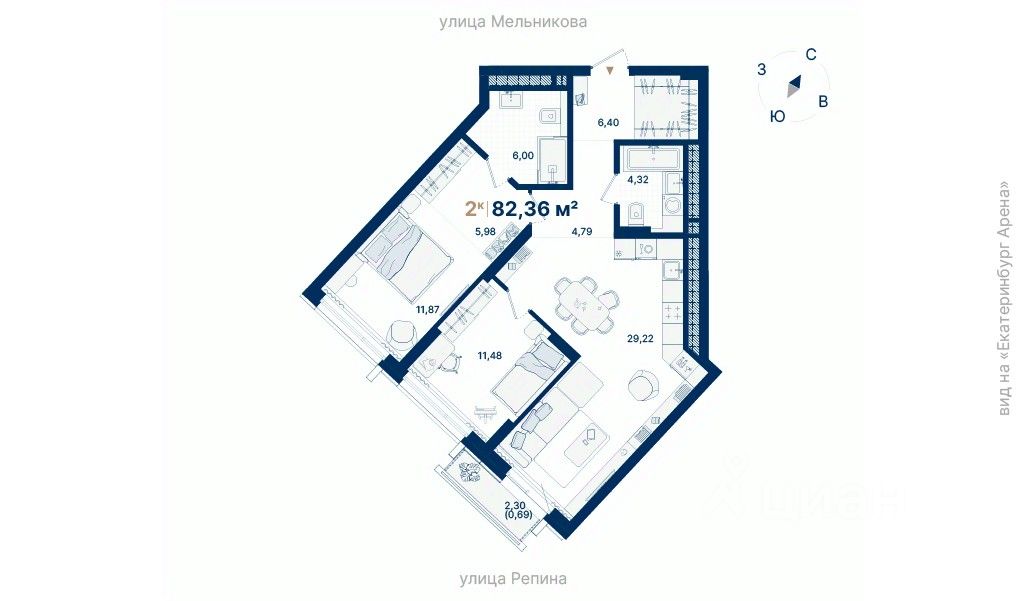 82 м² · Этаж 15 из 29