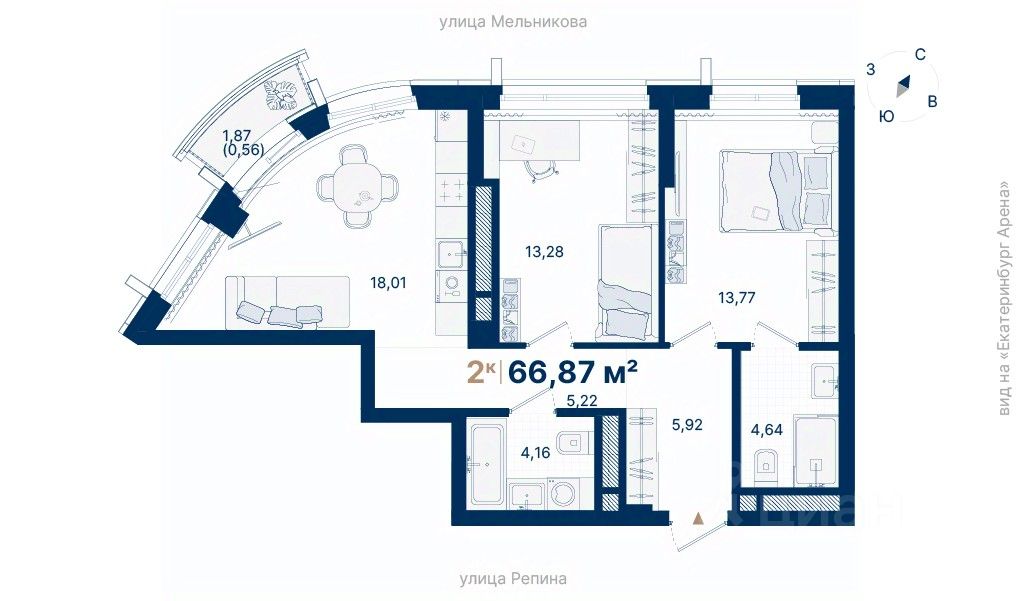 66 м² · Этаж 16 из 29