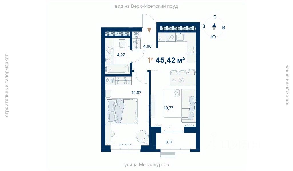 Однокомнатная квартира в Атлас Визион — баланс комфорта, стиля и удобства. Планировка легко трансформируется под любые сценарии: спальня, гостиная, место для работы. Отличный вариант как для жизни, так и для сдачи. Комплекс расположен на ул. Металлургов, ВерхИсетский район — рядом транспортные развязки и остановки, гипермаркеты. Комфортную среду для жизни и отдыха обеспечивают: безопасный и разнообразный двор, наличие парковочных мест, сервисы на уровне жилого комплекса, своя УК. Доступны гибкие условия для покупки: ипотека, рассрочка, трейдин, комбопокупка.