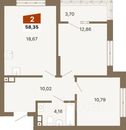 58 м² · Этаж 2 из 23