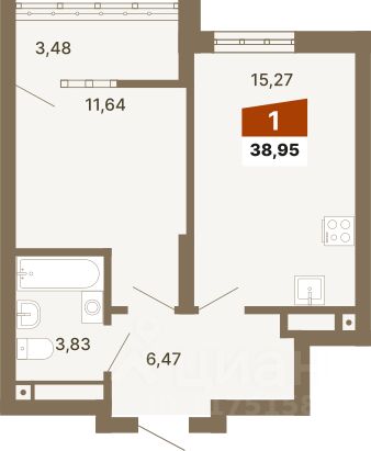 27 м² · Этаж 15 из 15