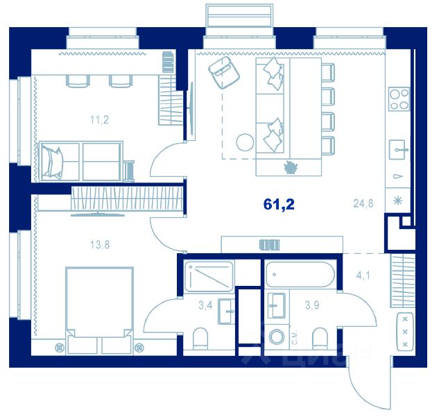 61 м² · Этаж 15 из 32