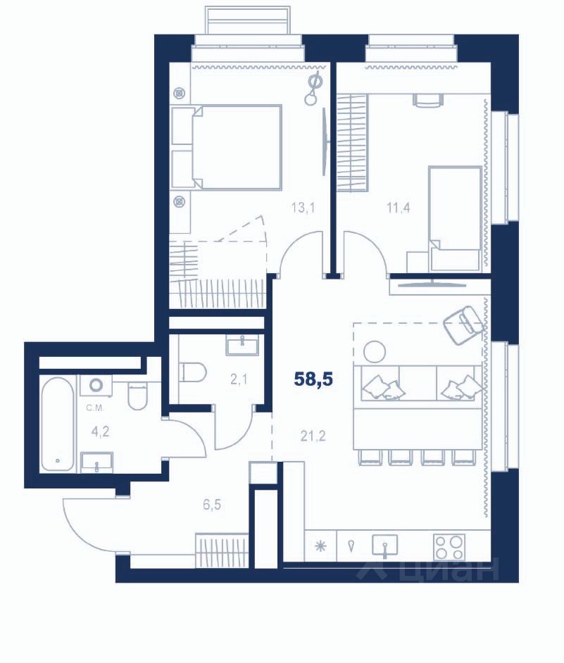 58 м² · Этаж 21 из 32
