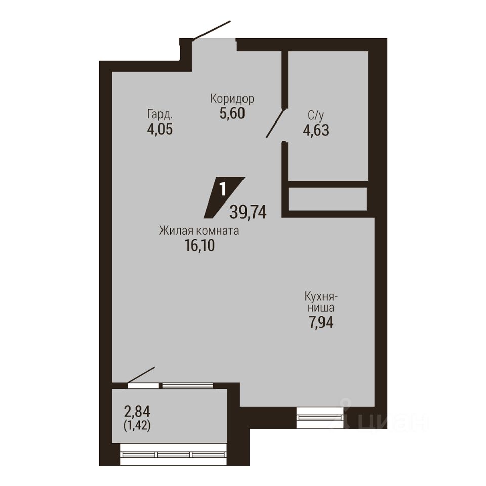 39 м² · Этаж 21 из 23