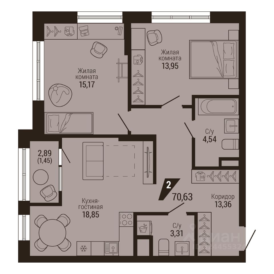 72 м² · Этаж 2 из 23