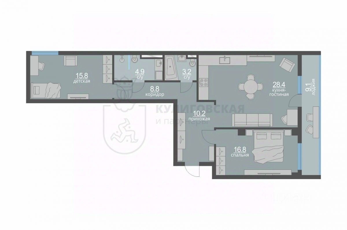 Продается двухкомнатная квартира с предчистовой отделкой в ЖК ''Гоголя 21'' на 9 этаже. Общая площадь: 110.15 кв.м., жилая: 33.6 кв.м., площадь просторной кухни-столовой: 40.2 кв.м. Квартира угловая, очень светлая, естественная вентиляция при открытии окон. В квартире два совмещенных санузла. Высота потолков 2.98 м. Дом монолитный, двухподъездный, переменной этажности, от 21 до 25 этажей. Квартира находится в 1-й секции высотой 25 этажей в корпусе 1. На этаже 5 квартир. В подъезде 2 пассажирских и 1 грузовой лифт. Начало строительства - 3 квартал 2025 года. Окончание строительства - 3 квартал 2028 года. Оформление сделки по договору долевого участия. Квартира с кухней-гостиной и двумя спальнями в проекте Гоголя 21. Особенности планировки: свободная планировка. квартиры в нашей базе: ЗНГ01-Ж1.9.3. Гоголя 21 станет точкой, привлекающей прогрессивных, состоятельных, предприимчивых, модных, но не пафосных людей. Людей дела. Две башни — олицетворение энергии, того самого, изначального пульса Екатеринбурга, возникшего вместе с ударами молотов первых железоделательных заводов. ''Гоголя 21'' деликатно, но уверенно встраивается в жизнь главной набережной Екатеринбурга. Ведёт уважительный диалог с архитектурными доминантами по соседству. Формирует новый образ городского центра. Две башни — 21 и 25 этажей — объединены четырехэтажной галереей. 169 квартир со свободными планировками, средней площадью в 128 м² и высотой потолков до 3,3 метра напоминают, что на Урале живут люди, привыкшие к простору. Ландшафтные решения в доме на Гоголя, 21 придумали не мы, а Екатеринбург. Главный здесь — гранит. Серый, фактурный, незыблемый, как сам Урал. Он часто встречается на центральных улицах, а в нашем доме используется как материал для мощения и декорирования фонтанов. Все многолетники на клумбах, от гортензии до спиреи, цветут белым: лаконичная палитра привносит в ландшафт уральскую сдержанность и элегантность. На уровне четвёртого этажа устроим главное открытое пространство для отдыха на свежем воздухе — только для жителей ''Гоголя 21''. В центре террасы — большая зона с летней кухней: гриль, барная стойка, общий стол и уютная лаунж-зона, где можно собраться компанией. В событийной зоне поставим беседку и большой стол с азиатским грилем — место для ужинов и летних вечеринок. Пространство примыкает к залу для праздников, поэтому летом здесь можно устраивать большие соседские встречи. Рядом с игровой комнатой появится пространство для детей — в хорошую погоду их можно объединить. Пока дети лепят песочные куличики или придумывают сюжеты в игровом домике, родители смогут приглядывать за ними, раскачиваясь в подвесных креслах с книгой или ноутбуком. А для спокойного отдыха взрослых и разговоров наедине организуем тихую зону у зенитного фонаря. На террасе — спокойная зелень, бело-розовое цветение, медные акценты в сочетании с серым камнем и террасной доской. По периметру — стеклянные ограждения и живая изгородь, которые делают пространство безопасным и
