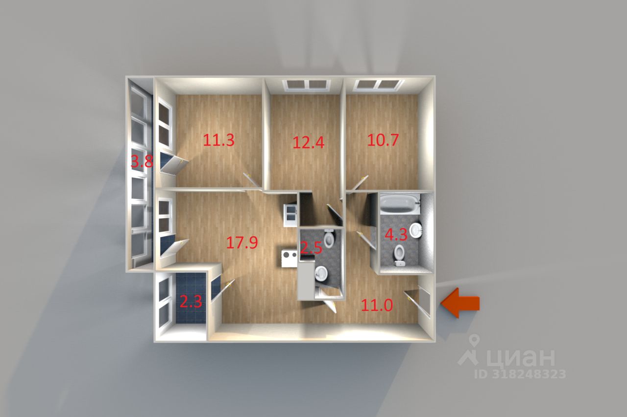 Продается 3-х комнатная квартира на 26 этаже в 26 этажном жилом доме. Вид из окон на центр города и во двор. Высота потолков 2,8м. В квартире две отдельных спальни 13 и 10 кв.м и большая кухня-гостинная 30 кв.м., огромный совмещённый сан.узел 5,6 кв.м. Приоритет последнего этажа в том что над ''головой'' ни кто не бегает ни скачет, не скрипит всё тихо и спокойно. В доме сделаны качественные окна с хорошей шумоизоляцией, поезда при закрытых окнах практически не слышно. Кухонный гарнитур остаётся в подарок. Квартира освобождена, быстрый выход на сделку, один взрослый собственник, без обременений, возможна ипотека. Обмен не интересует. Торг самый минимальный и только после осмотра и принятия твердого решения о покупке. Риэлторам огромная просьба не беспокоить, продаю не спеша сам!!!